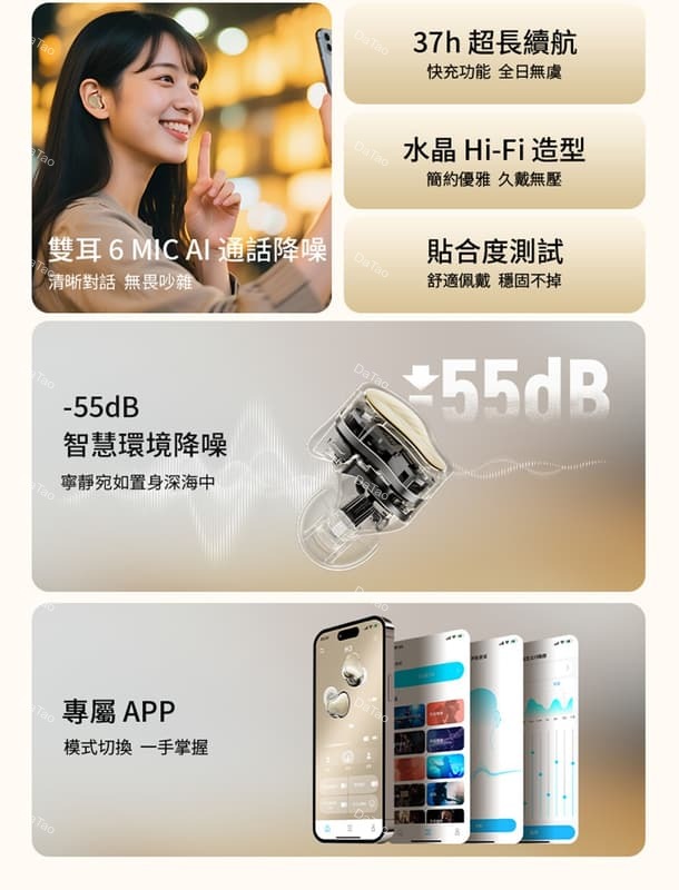 * 四模式 AI 混合主動降噪,最高可達 55dB